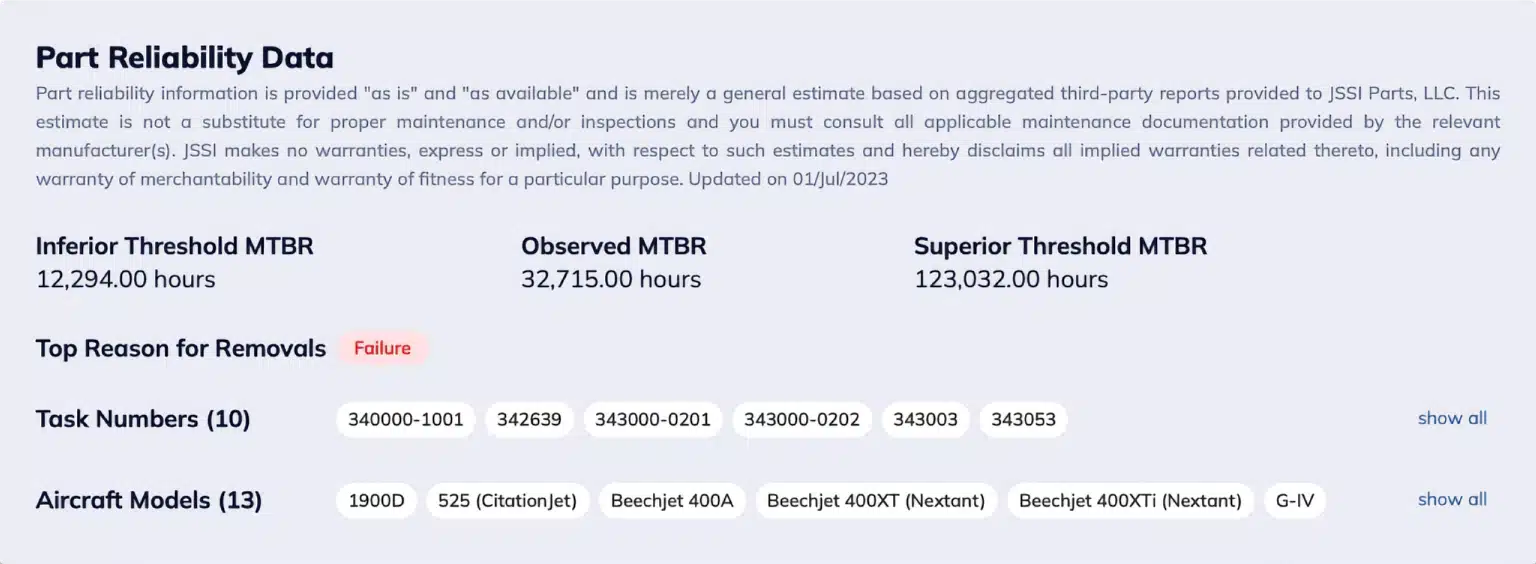 - Aircraft applicability, alternates, and reliability information