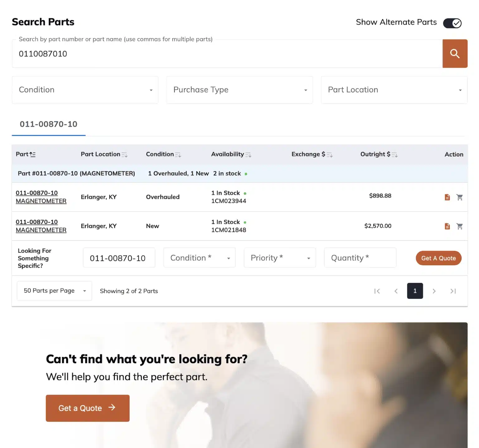 Access thousands of certified parts with instant pricing.
