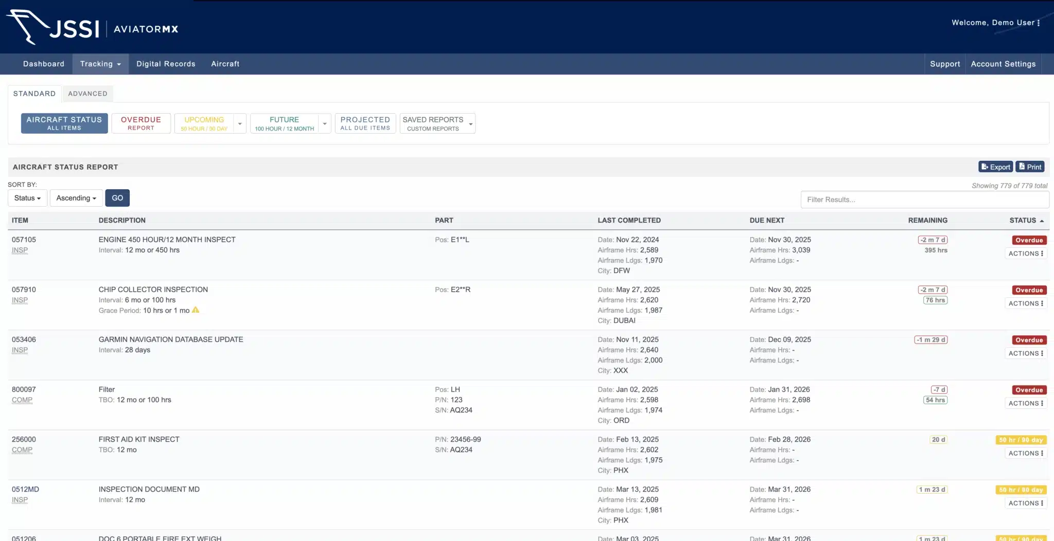 - Instant view of aircraft status and metrics